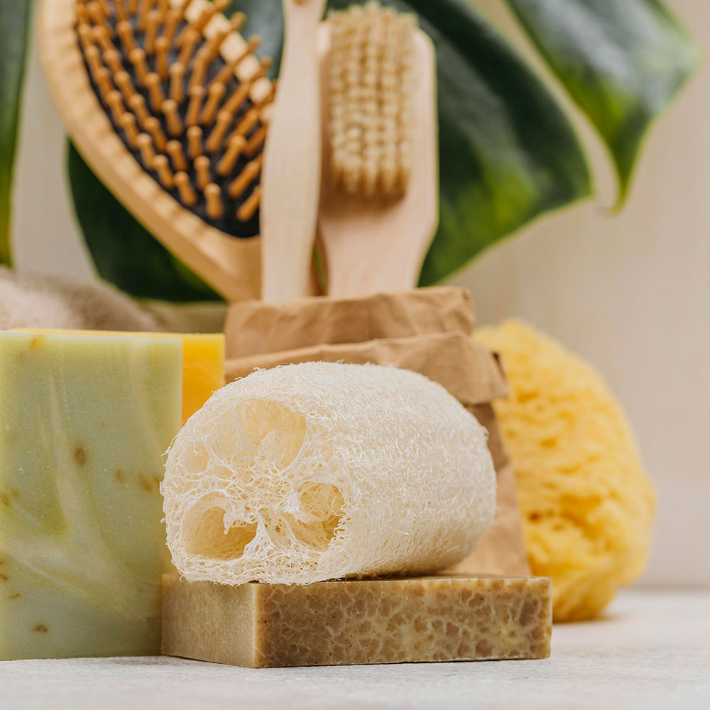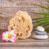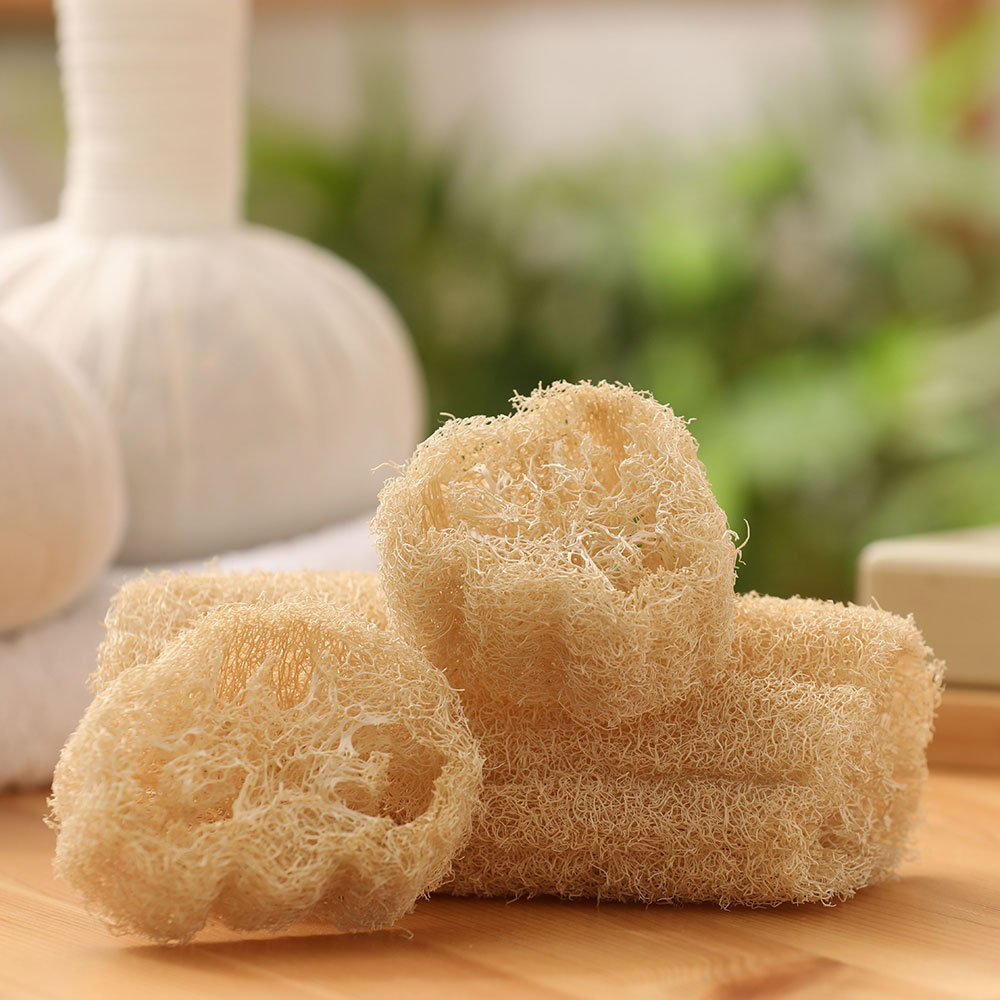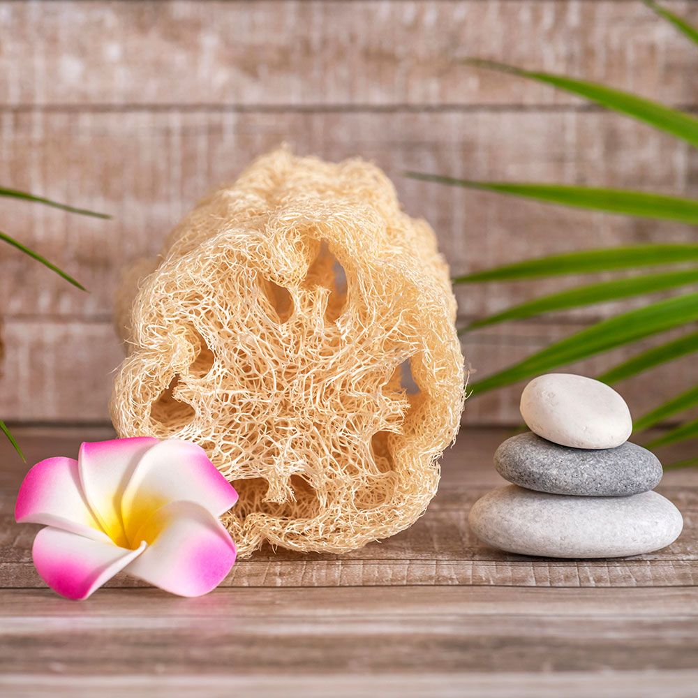 Natural loofah bath sponge made from plant fibers for gentle exfoliation. Removes dead skin cells, improves blood circulation, and leaves skin soft and smooth. Eco-friendly, biodegradable, and chemical-free — perfect for a refreshing, spa-like bathing experience while supporting a zero-waste lifestyle.